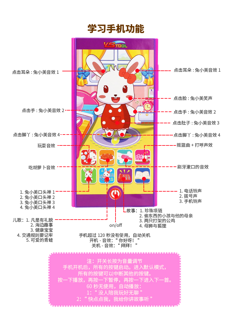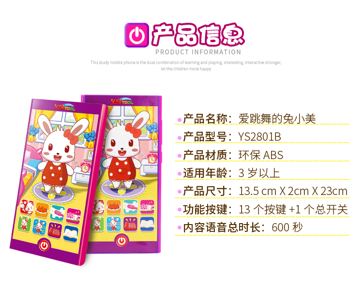 YS2801B 爱跳舞的兔小美学习手机